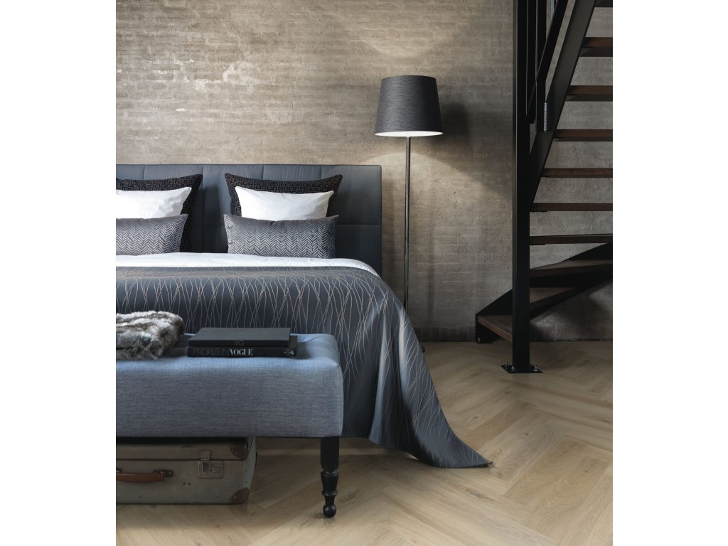 Vinylová podlaha z kategorie Style Floor. Autentická struktura dřeva v přírodním odstínu, která velmi dobře imituje přírodní dubovou podlahu. Moderní vzhled podlahy díky pokládce do stromečku tzv. rybí kost působí v interiéru jako elegantní parkety. Zátěžová třída 23/31. Tloušťka 2,5 mm. Celoplošné lepení zvyšuje stabilitu a komfort u této vinylové podlahy. Bez ftalátů. Pro doporučené lepidla a podlahové lišty srolujte níže.