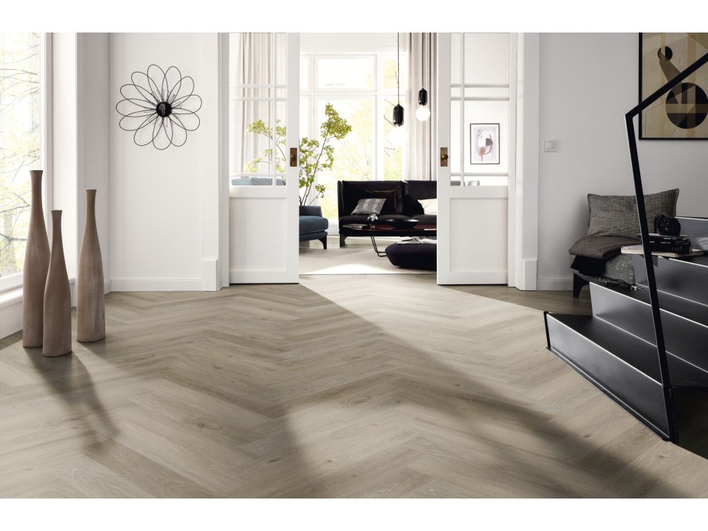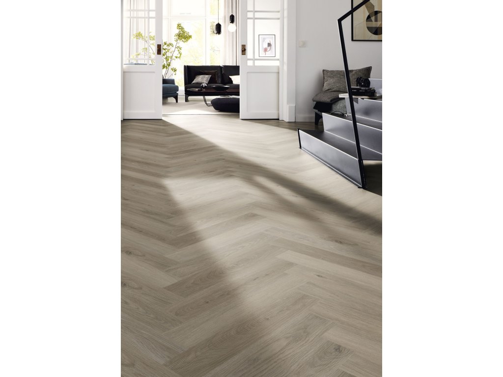 Vinylová podlaha DUB FISHBONE OXFORD CLICK 0,3 RIGID z kategorie Style Floor. Tato podlaha se odlišuje od ostatních tím, že se pokládá do stromečku a tím nahrazuje elegantní styl dřevěných parket. Díky svému složení a označení Original SPC Vinyl DIAMOND RIGID splňuje podlaha maximální odolnost, stabilitu a tvrdost. Tyto podlahy jsou bez obsahuje ftalátů a jsou proto zcela bezpečné pro vás i domácí mazlíčky.