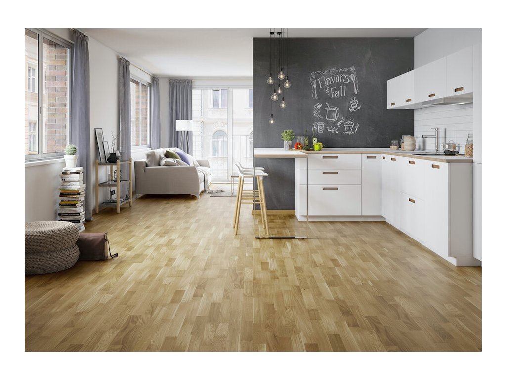 Pakliže hledáte dřevěnou podlahu ve stylu klasických parket, pak je pro vás dřevěná podlaha Hamburk ta pravá volba. Jedná se o třívrstvou dřevěnou podlahu v čistém dekoru s ojedinělým výskytem suků. Povrch je ošetřen 5 vrstvy laku, díky čemuž podlaha získává maximální odolnost a dlouholetou životnost. Dopřejte si dřevěnou podlahu za cenu laminátové či vinylové podlahy.