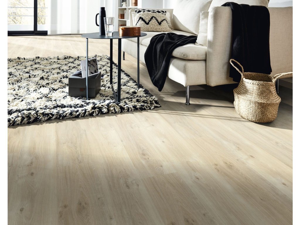 Světlá vinylová podlaha z kolekce XL je charakteristická velkoformátovými lamelami. Světlý přírodní odstín imitující dubovou dřevěnou podlahu dodává interiéru světlo a útulný vzhled. Autentický vzhled dřeva je dána speciální povrchovou úpravou Registr Embossing. Zátěžová třída 21-23,+31 řadí tuto podlahu jako ideální podlahu do každé domácnosti nebo komerčních prostor s nižší zátěží - malé kanceláře, zasedací a konferenční prostory, hotelové pokoje atd. Celoplošné lepení dodá podlaze stabilitu a stálost, která nezklame ani po několika letech. Bez ftalátů. Vhodná na podlahové vytápění. Pro doporučená lepidla a podlahové lišty srolujte níže.