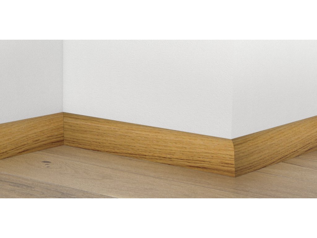Dřevěná soklová lišta s dubovou dýhou v přírodním dekoru. Podlahová lišta elegantního zaobleného tvaru má smrkové jádro obalené dřevěnou dýhou bez povrchové úpravy.Lišty mají vyfrézovanou drážku pro snadnou možnost přichycení lišt díky speciálním klipům Clipstar, taktéž lze jimi vést kabel do průměru 7mm. Montáž lišt je možné lepením nebo pomocí Clipstar k zajištění trvalého přítlaku. Klipy jsou vhodné především u nerovných povrchů nebo na místa, kde bude třeba lišty opakovaně instalovat. Specifikace: